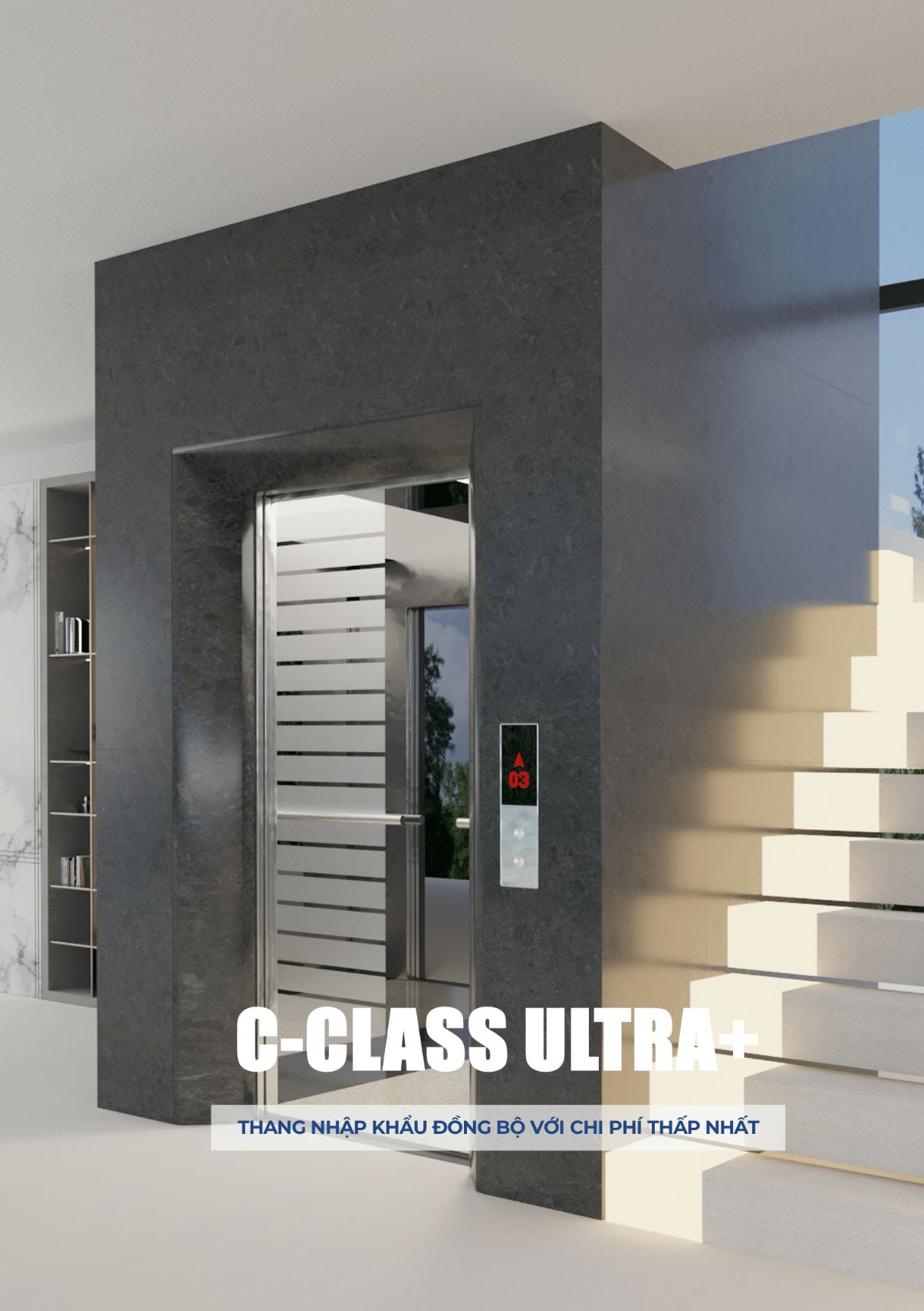 Nhập khẩu đồng bộ, chất lượng và thẩm mỹ quốc tế với mức đầu tư thấp nhất. Dòng thang hố xây truyền thông với thẩm mỹ dẹp và vận hành hoàn hảo.